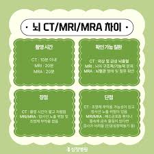 - MRI는 **조직·장기 진단**, MRA는 **혈관·혈류 진단**으로 목적이 다릅니다.
