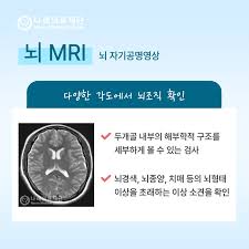 | MRI | 연부조직, 장기, 신경, 근육 | 종양, 관절염, 디스크, 뇌출혈, 신경병변 |