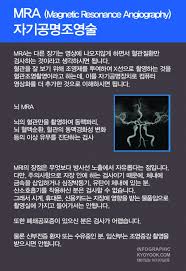 - MRA (자기공명혈관조영술): MRI 원리를 적용해 **혈관 내부 구조와 혈류 흐름**을 3D 영상으로 확인하는 검사입니다. 동맥류, 혈관 협착·폐쇄·혈전 등의 진단에 사용됩니다 :contentReference[oaicite:2]{index=2}.