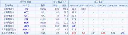- > 3.0 mg/L: 고위험 (심혈관질환 가능성 ↑)