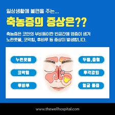 - 비내시경, CT로 진단하며, 약물·비강세척·수술로 치료할 수 있습니다.