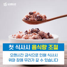- 식사량을 천천히 늘리며 기름기 적고 맵지 않은 음식 선택