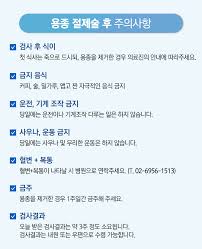- 용종이 크거나 다수 제거된 경우, 출혈 위험이 있으므로 6~12시간 금식 권장