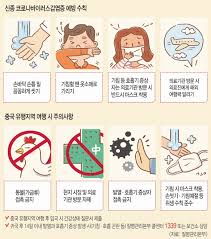 - 손 씻기 생활화: 외출 후, 식사 전 후