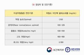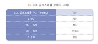 - LDL 정상수치는 일반 성인 기준 100 mg/dL 미만