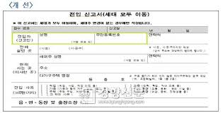 - 전입신고서: 주민센터 비치 또는 미리 출력 가능